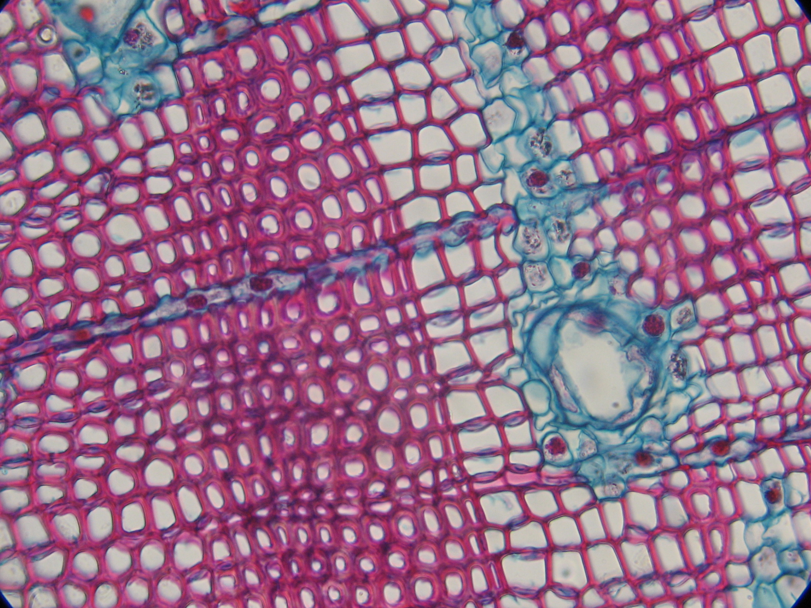 Ray and resin canal in pine stem